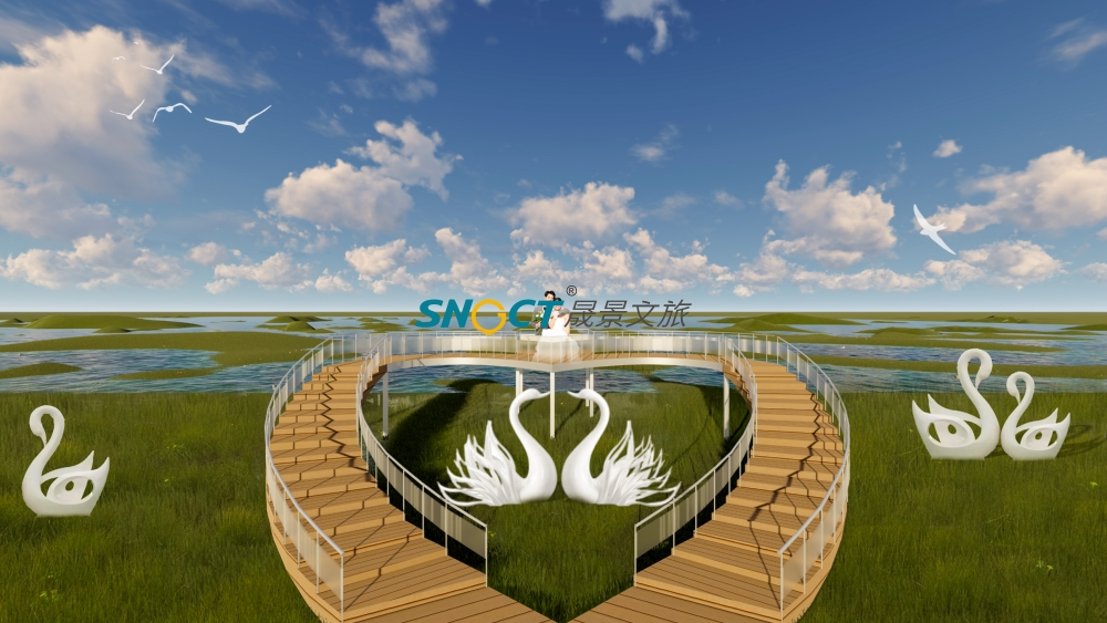 根据对资源的分析,我们总结出麦溪乡大天鹅、藏绵羊等五大特色资源,基于天鹅湖的生态属性,在整体规划上以生态环境保护为开发原则,分阶段对片区进行打造利用,在不破坏生态湿地环境的前提下,进行适度的旅游开发,确保环境的可持续发展。